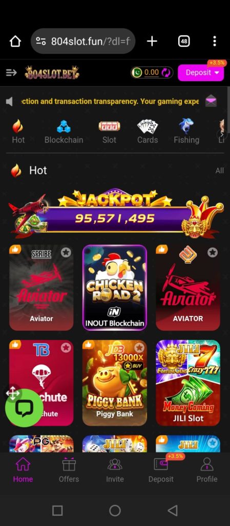 804Slot Game is an online casino-style slot gaming application where users can play different slot games and earn real cash. The platform provides a digital casino experience, allowing players to spin slots, try their luck, and win rewards directly from their phones.