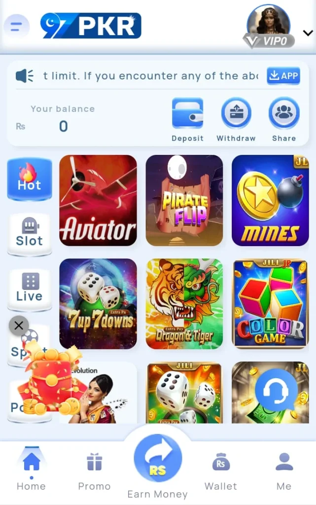 97PKR Game is an online gaming app that allows users to play different games and earn real money.