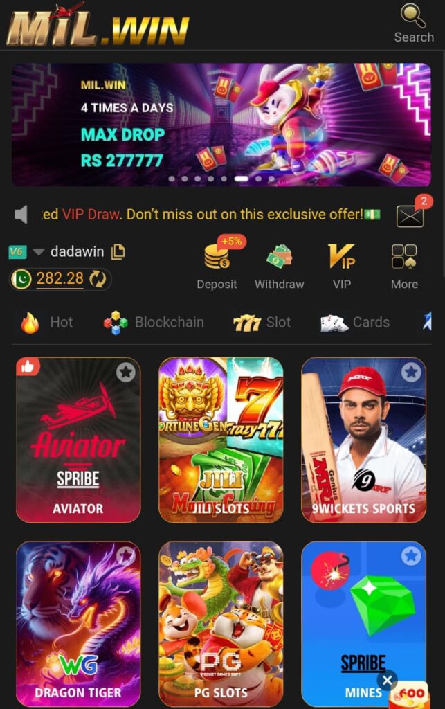 Mil Win Game is a real-money gaming app where players can play slots, card games, and win cash.