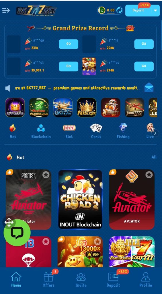 Depositing and withdrawing money was fast and hassle-free, especially using Easy paisa and Jazz Cash. Security also felt strong, as I never faced any issues with personal information. Overall, I think SK777 Game is a trustworthy app for anyone in Pakistan who wants to combine entertainment with earning.